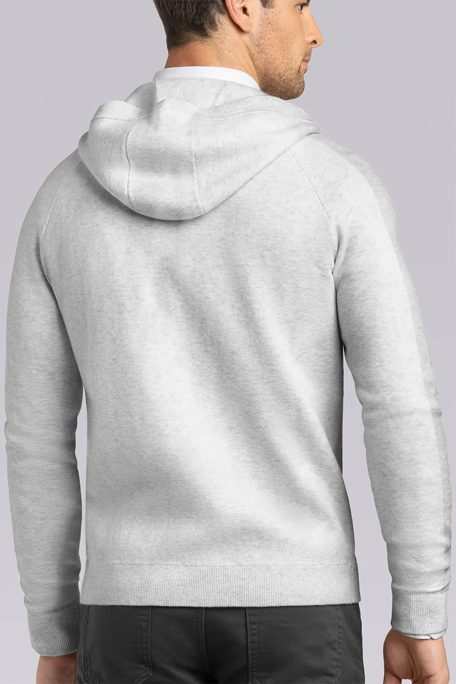Model is 6'2" with a 40" Chest and is wearing size M, Regular fit, Light Grey