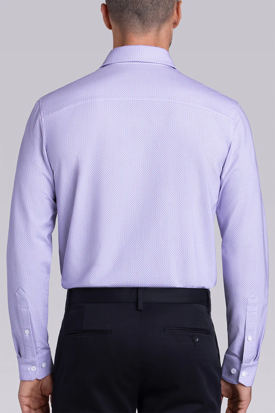 Model is 6'2" with a 40" Chest and is wearing size M, Regular fit, White/Purple