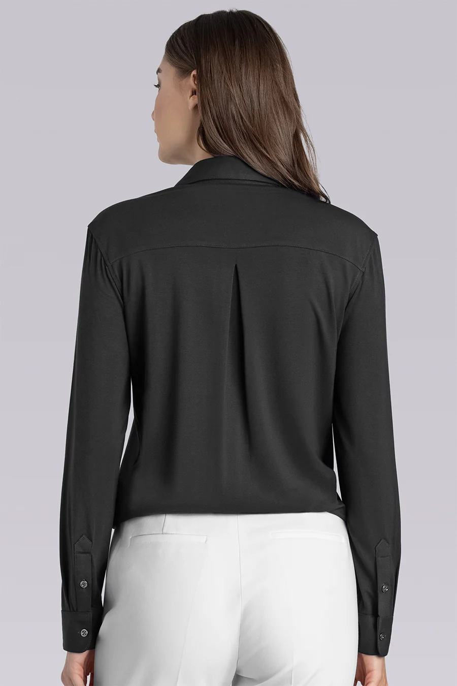 - Solid Black V-Neck Long Sleeve Shirt in Icy Bamboo
