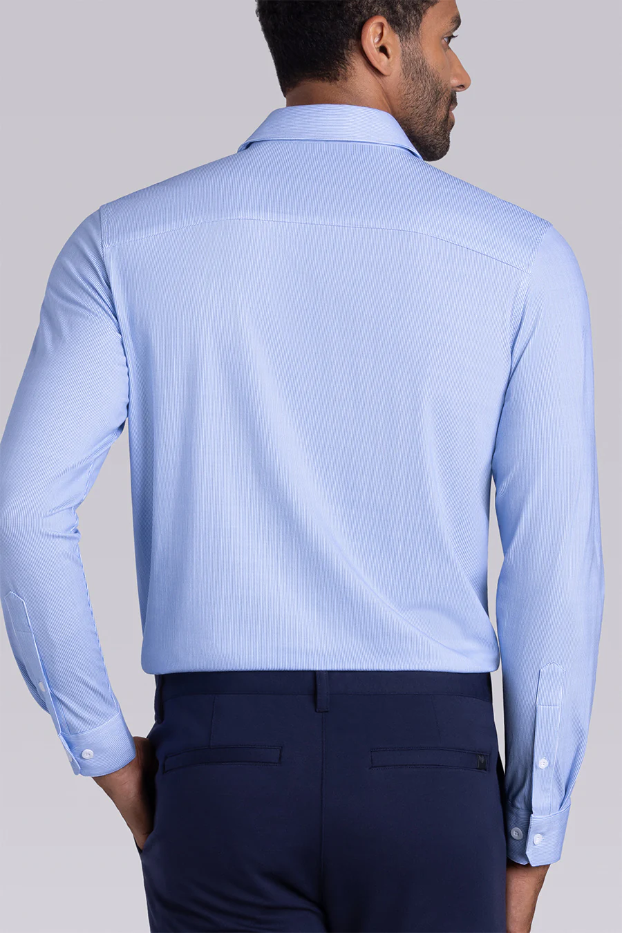 Model is 6'2" with a 40" Chest and is wearing size M, Regular fit, Blue