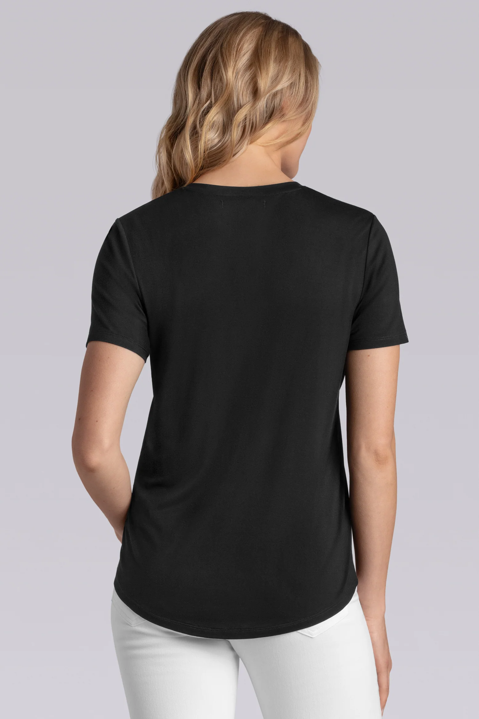- Solid Black V-neck T-shirt with Shirtail Hem in Icy Bamboo