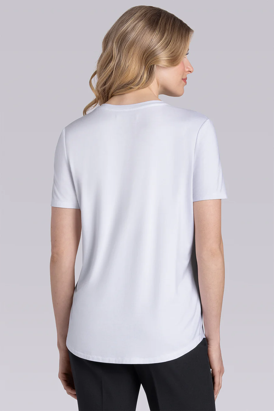 - Solid White V-neck T-shirt with Shirtail Hem in Icy Bamboo